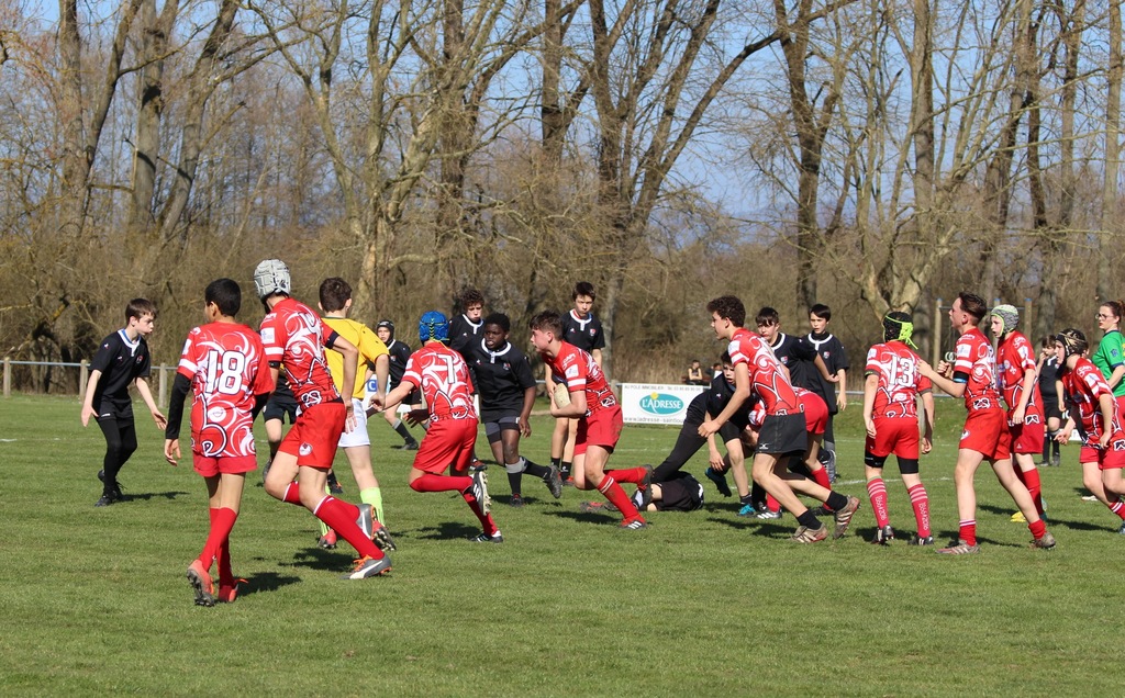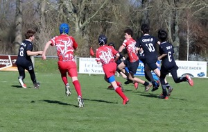 Examen de passage brillamment réussi avec une belle victoire 34 à 5. Exemplaires en défense, nos jeunes ont su proposer un vrai jeu d’équipe pour inscrire 6 essais de qualité.