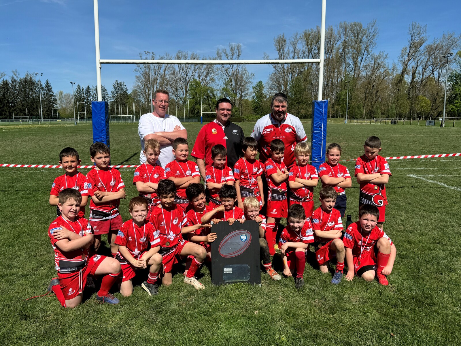 Les éducateurs Greg, David et Eric remercient les enfants pour ce beau titre car ce sont eux qui sont sur le terrain ! Rendez-vous ce dimanche à Sélestat pour le challenge Alsace cette fois, où les équipes du Bas-Rhin seront présentes
