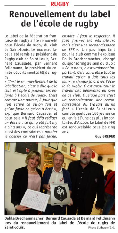 RENOUVELLEMENT DU LABEL FFR ECOLE DE RUGBY
